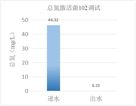 我司技術(shù)人員通過(guò)現(xiàn)場(chǎng)評(píng)估,發(fā)現(xiàn)生化系統(tǒng)總氮去除效率有限,生化溫度30℃,系統(tǒng)內(nèi)有效生物量不足,導(dǎo)致系統(tǒng)抗沖擊能力差,出水總氮難以達(dá)標(biāo)。通過(guò)技術(shù)人員現(xiàn)場(chǎng)投加復(fù)合碳源101和激活菌102,再配合現(xiàn)場(chǎng)生化系統(tǒng)運(yùn)行條件控制、優(yōu)化,達(dá)到如下效果: