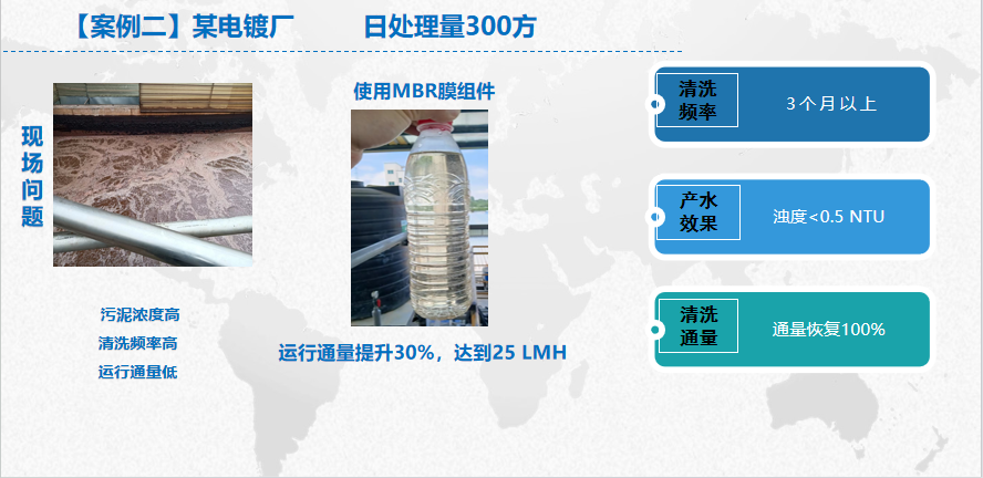 6. 高抗污染性能:在40LMH運(yùn)行通量下,膜組件清洗周期長(zhǎng)達(dá)3個(gè)月以上。